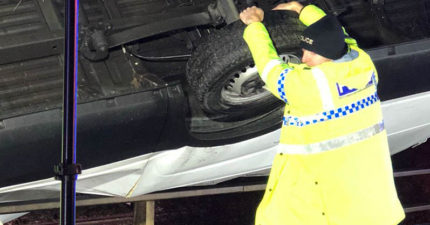 超人無誤!神力警察「徒手撐住懸空貨車」,救回司機一命!