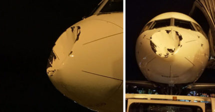 NBA雷霆專機「機頭嚴重凹陷」驚現一整個大洞!球員:撞到超人了 (影片)