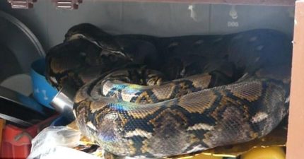 回家後驚見「超巨大蟒蛇」,嘴裡居然是家裡心愛貓咪的腳!