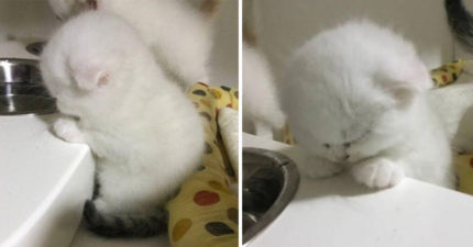 準備罐罐時驚見其中一隻貓咪「突然一動不動」,上前查看發現「最萌畫面」絕對不可以打擾!