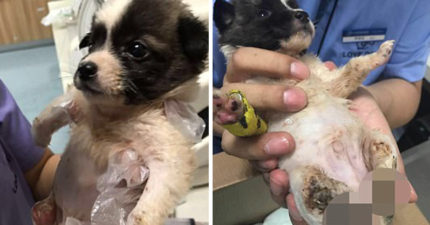 不到一個月狗狗「雙腿被撕掉」,獸醫為他進行截肢手術:「狗狗非常堅強!」