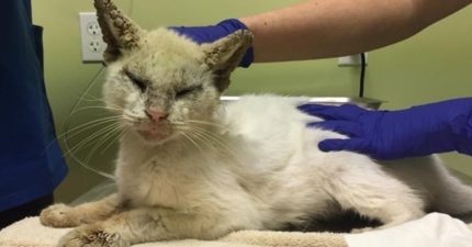 貓咪「耳朵和眼睛都被結痂封起來」完全看不見,治療完「貓咪一開眼超美」才發現他是無價之寶!