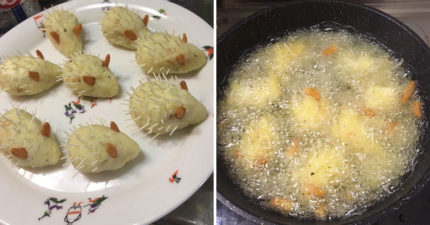 他一針一針做出「超精緻刺蝟」薯球 炸完「魂飛魄散」讓人想哭