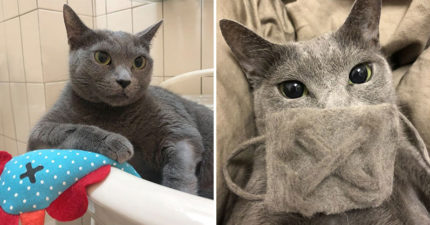 奴才用蓝猫废毛自制「猫咪专用口罩」模样超Q 网友:自产不怕断货!