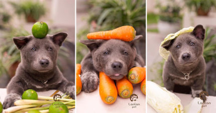 小黑狗「头顶蔬果」超呆萌爆表 面对青椒「表情逐渐母汤」!