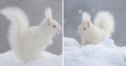 攝影師捕捉「稀有白松鼠」蓬鬆毛+紅眼睛 雪地精靈「特定地方」才看得到!