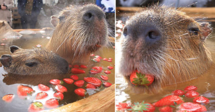 網友捕捉「水豚泡草莓浴」表情只有爽 網嘆:鼠輩過得比我好QQ