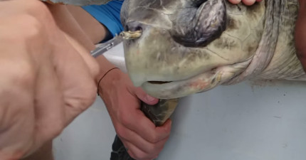他們發現海龜鼻中卡了超長異物,用箝子拔出的痛楚畫面會讓你再也不敢亂丟垃圾!