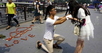 中國男友利用上萬「荔枝」排愛心向女友求婚,女友吃下荔枝後告訴他…