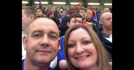 情侶在球賽當中自拍,但照片後方的男子卻讓一位媽媽的心臟差點停止
