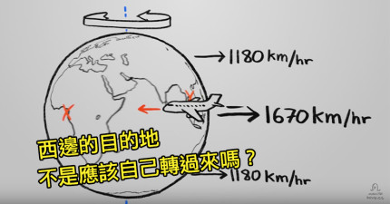 這就是為什麼地球雖然以每小時1670公里速度朝東轉,但是飛機往西邊飛卻沒有比較快!