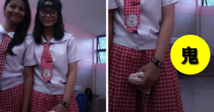 這2位女學生在學校廁所美美拍照,卻意外拍到黑暗角落跟貞子長得超像的幽靈!