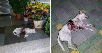 流浪白狗「遭吸毒人士猛砍數10刀」血流不止卻沒人敢靠近,就在他快撐不下去時…