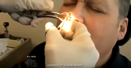 這男生鼻子裡一直不舒服就去找醫生看,結果醫生就從裡面拔出一頭「累積幾年比大拇指還大的鼻屎猛獸」!