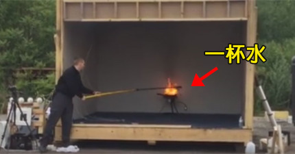 火燃燒起油很多人第一個錯誤反應就是用水去澆熄。這個人示範這麼做的超恐怖「地獄火」結果!