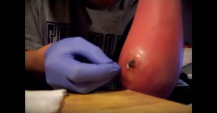 這個男生被蜘蛛咬了3-4後手就腫到變成一個大葫蘆!當用針戳破然後擠壓時…OMG!(比痘痘新聞猛)