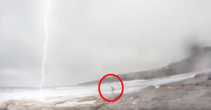 他拍女友在海邊奔跑時忽然一道閃電打下來,接著男友逃跑時當機時說出的話會讓你笑到需要換褲子!