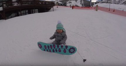 本來看到坐在雪上穿著滑雪板的14月大小寶寶只是要拍照,但影片第20秒時我已經崇拜到五體投地了!