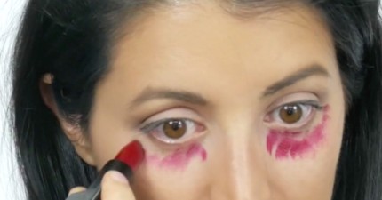 這個女生先在眼睛下面畫口紅 塗抹均勻後效果也太好了吧!