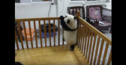 這隻小貓熊認為自己以後要成就更大的事業,不能被關在這個超小的木籠子裡,不斷逃獄的模樣讓我笑壞了。