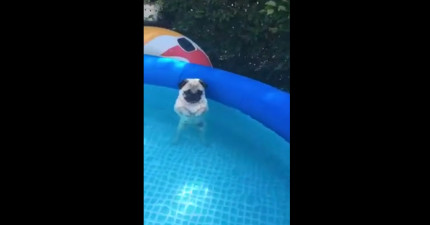 小巴哥寶寶一下水就忘記該怎麼當狗狗了,一動就把主人給笑死了!