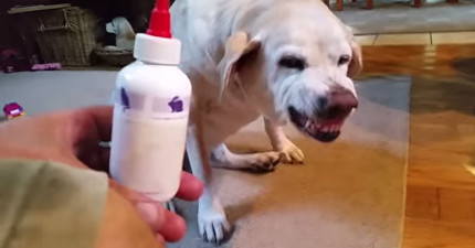 每次這隻狗狗要點耳朵藥水時都露出超兇的臉,但是會一直忍不住打噴嚏!