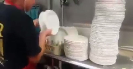 當老闆看到這個人洗盤子的速度後,就考慮直接把洗碗機給淘汰掉…