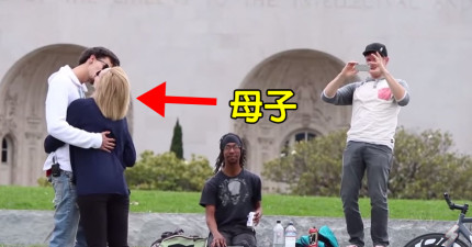 這兩個人假裝是母子然後請路人幫他們拍照,結果路人要拍的時候,他們居然開始舌吻…