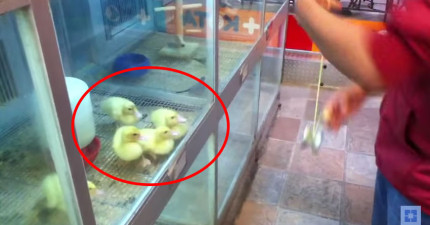 當這個人在小雞面前玩溜溜球越玩越快時,他們簡直全都快要瘋掉了!