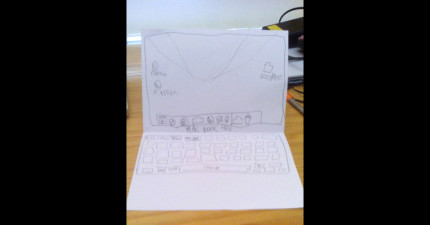 他有天回家發現筆電不見了只剩下這個「紙筆電」,“小偷”以為這樣他就不會發現不見了…