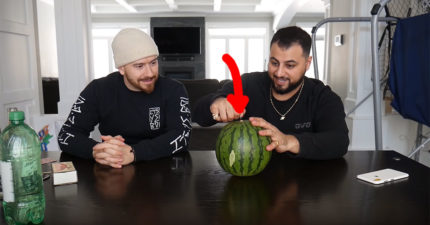 如何用10块钱币把西瓜给切成两半?试过N次他们终于找到方法