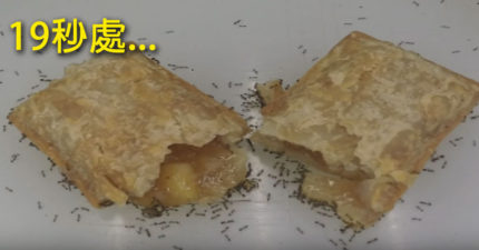 他拍下螞蟻把一整個麥當勞蘋果派「慢慢整個吃爆」的影片,最後畫面超驚奇!