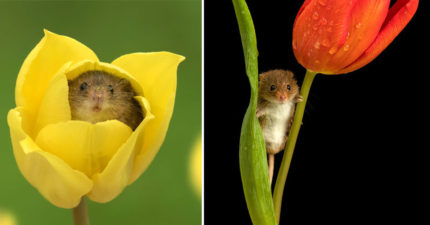 最可愛的採花大盜!攝影師拍下「會讓你瞬間紓壓」的最可愛採花小老鼠瞬間