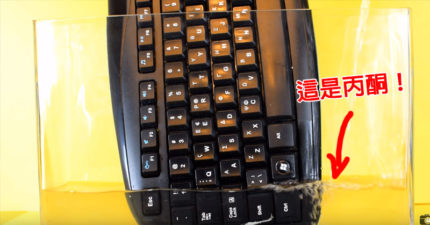 他實驗把「鍵盤放進滿滿的丙酮」 逐漸分解畫面整個超紓壓