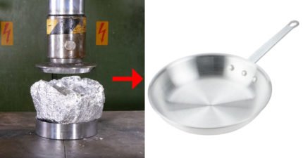挑戰用液壓機把「鋁箔紙」加成一個商店裡賣的煎鍋…網友:以後買液壓機就好了