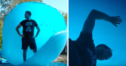 他站在一個大氣球裡面然後放慢100倍拍下戳破的畫面,結果誕生的超帥氣畫面讓我直接看了5次!