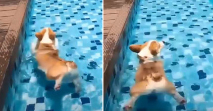 本基真的太熱!小柯G跳泳池展英姿 下秒短腿變「烤乳豬式」萌翻