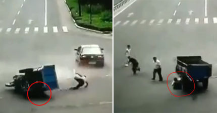 影/強國三輪車有智商 併軌之後路人救駕駛…繞一圈回來「再輾一次」