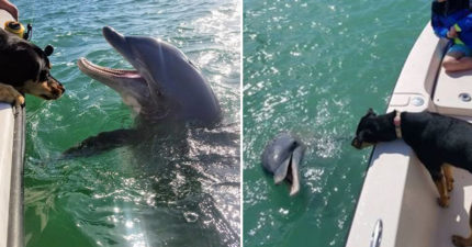 快來追我啊!小黑狗和海豚玩「水中捉迷藏」 肥屁屁翹高:快出乃~