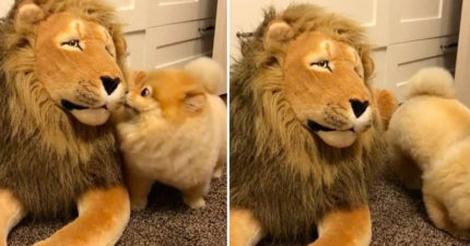 博美對獅子娃娃發出「愛的電波」 慘遭無視…直接惱羞成怒!
