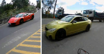 北宜公路見法拉利一定要靠邊!騎士生「靠經驗保命」法拉利開過下一秒死亡一瞬間 (影片)