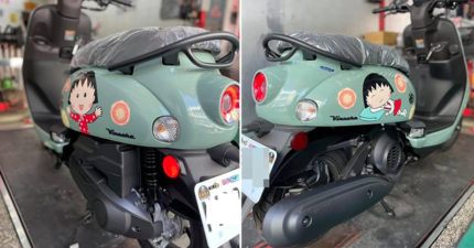 機車上印「櫻桃小丸子」超可愛 轉到正面嚇壞網友:伊藤潤二特仕版?