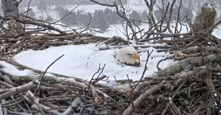 「整隻埋雪裡」還不避難?近看鷹媽「母愛發熱孵蛋」不退縮:守護我的孩子
