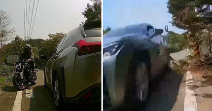 機車遭對向汽車「惡意逼車」 騎士險「摔入田裡」網怒:直接去報警了