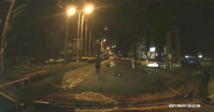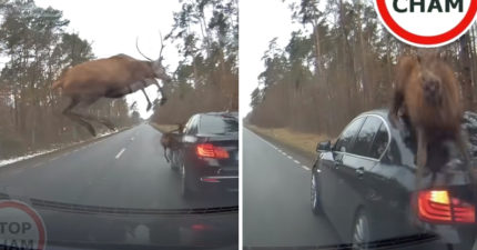 麋鹿過馬路「跳躍閃車」還是撞上 網看笑翻:最後一隻不要亂按空白鍵!