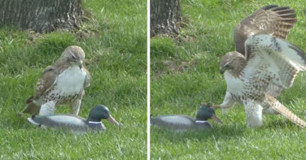 你怎都不逃?老鷹被「鴨子」無視好困惑 氣炸「二哈上身」:看我巴頭神功!