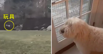 影/心愛玩具被「野生BOSS」玩飛天 狗狗焦急躲門後:媽媽幫我QQ