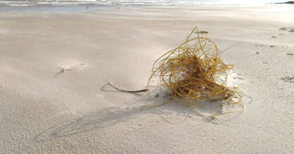 海邊見「黃色塑膠繩」以為垃圾 近看嚇愣:活的別碰