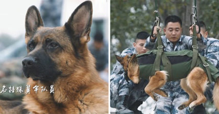 帥氣德牧空降練「雙人跳傘」 全程遮眼完美落地…比人類還專業