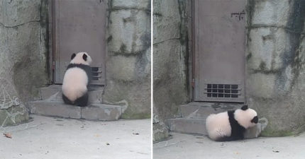 影/不要走嘛~熊貓擋門不讓保育員離開 孤單身影跌樓梯超可愛